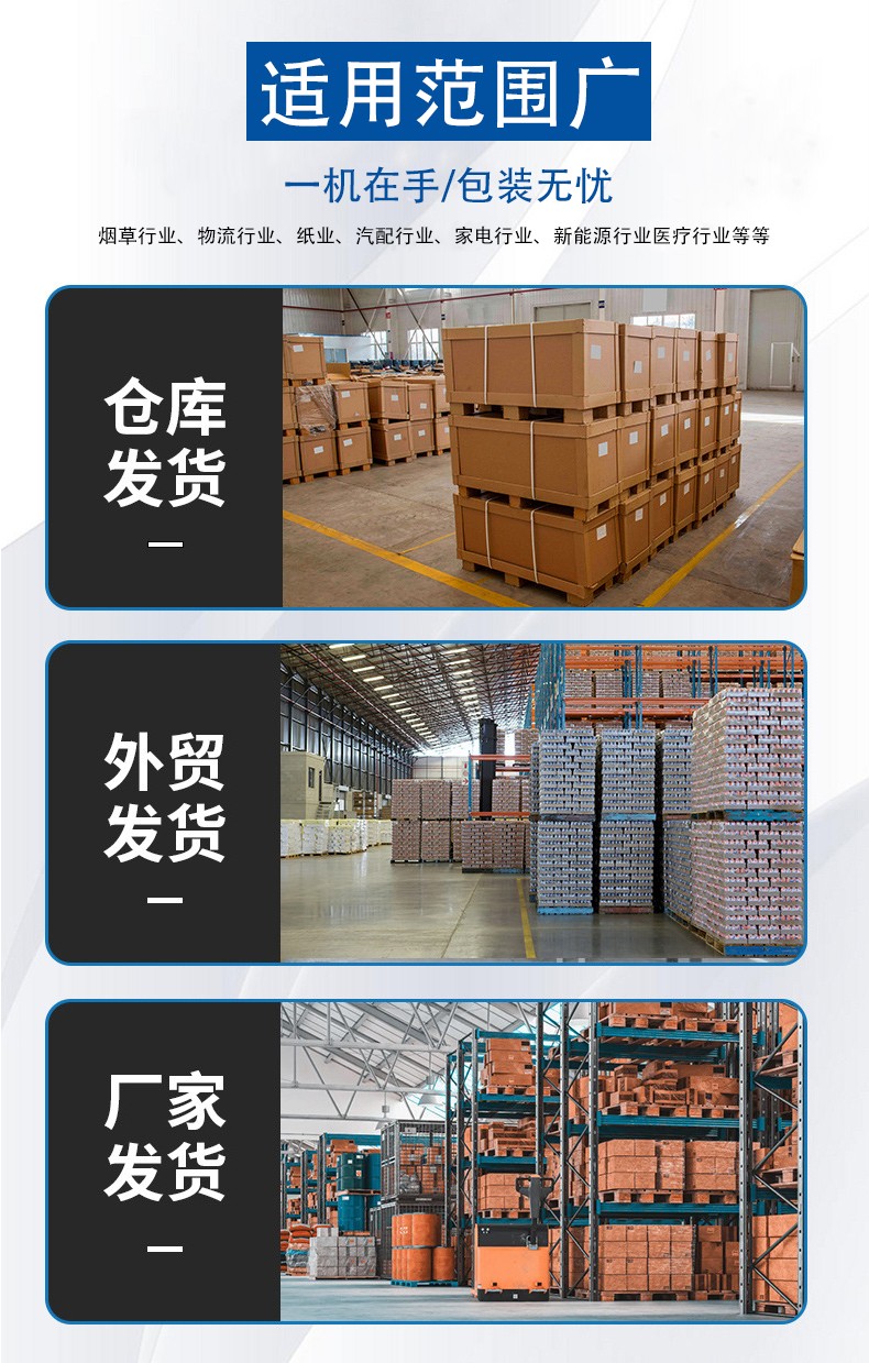 ,實現(xiàn) “貨物到位 - 自動打包 - 自動出料” 的無人化流程;單機作業(yè)可選基礎(chǔ)款
