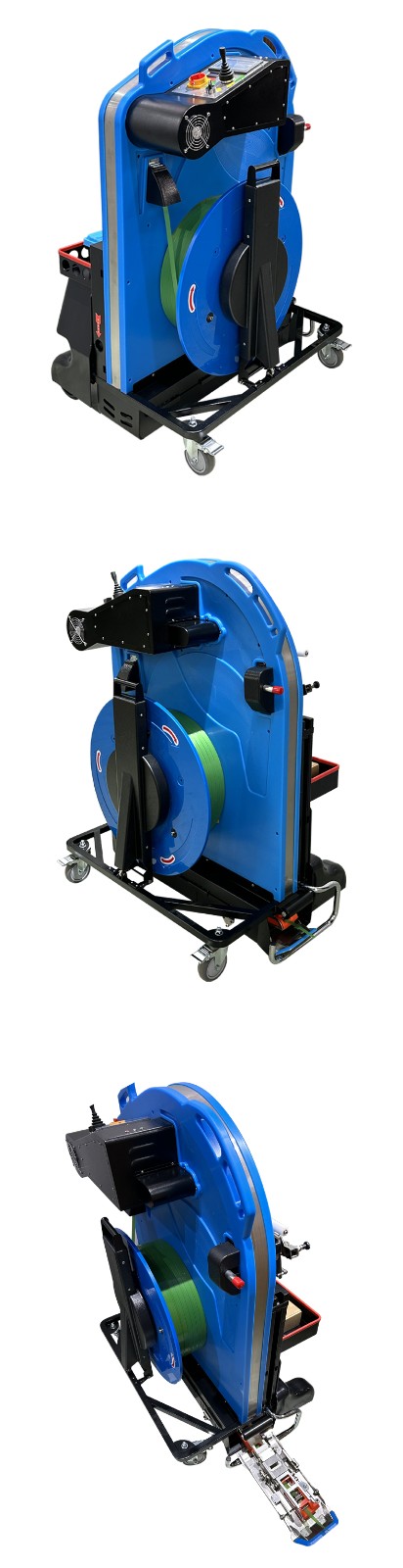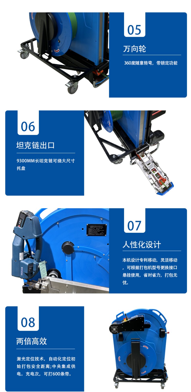 - 自動切斷與復(fù)位:粘合完成后,切刀機構(gòu)精準(zhǔn)切斷帶子,同時送帶機構(gòu)自動將下一段帶子送至待穿位置,完成一個循環(huán),等待下一批貨物。