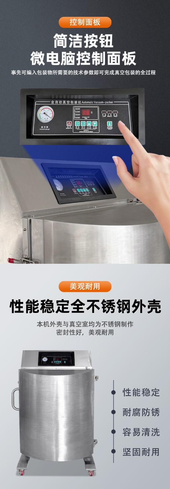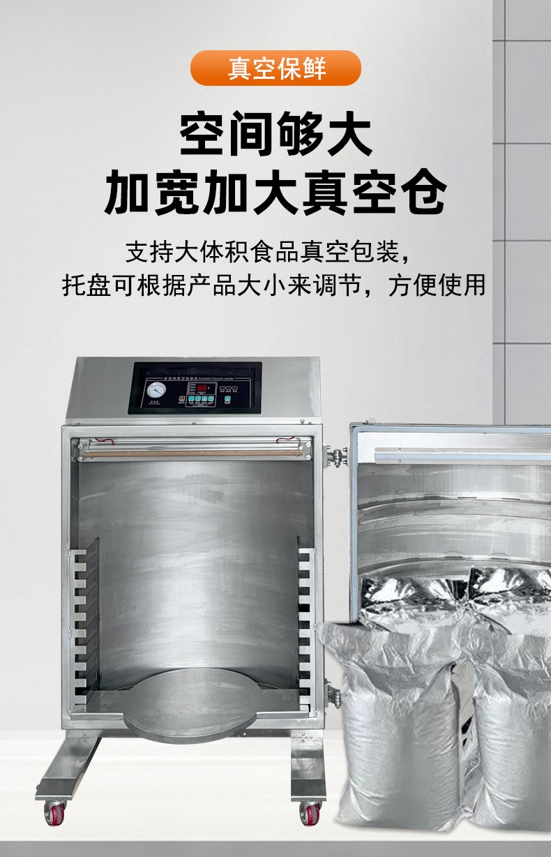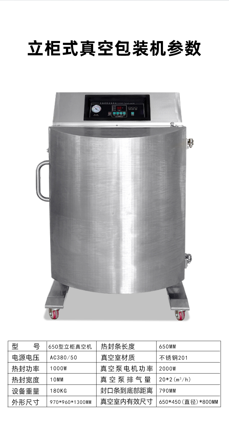 - 大容量真空室:立柜式真空包裝機(jī)的真空室容積較大,如 DZ-650L 型號(hào)