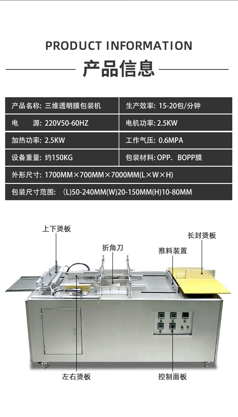 半自動(dòng)三維包裝機(jī)(又稱半自動(dòng)透明膜裹包機(jī)