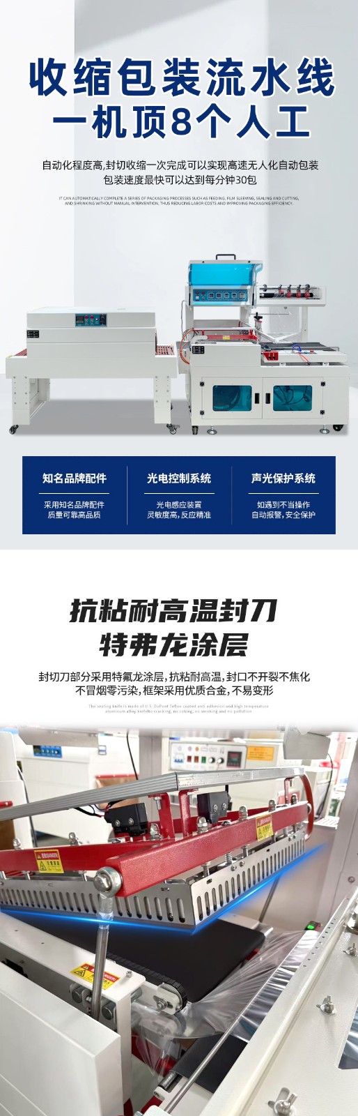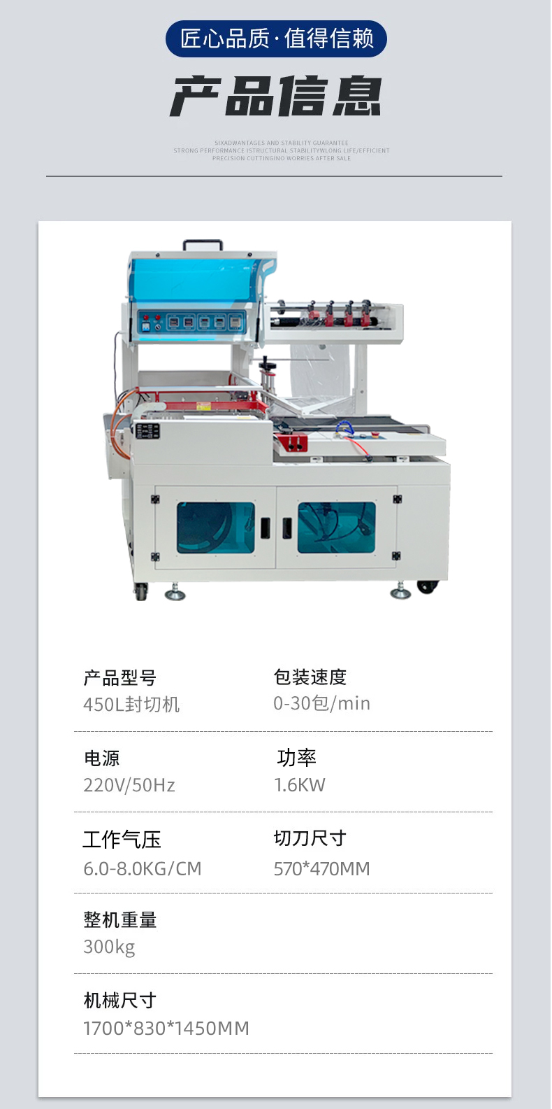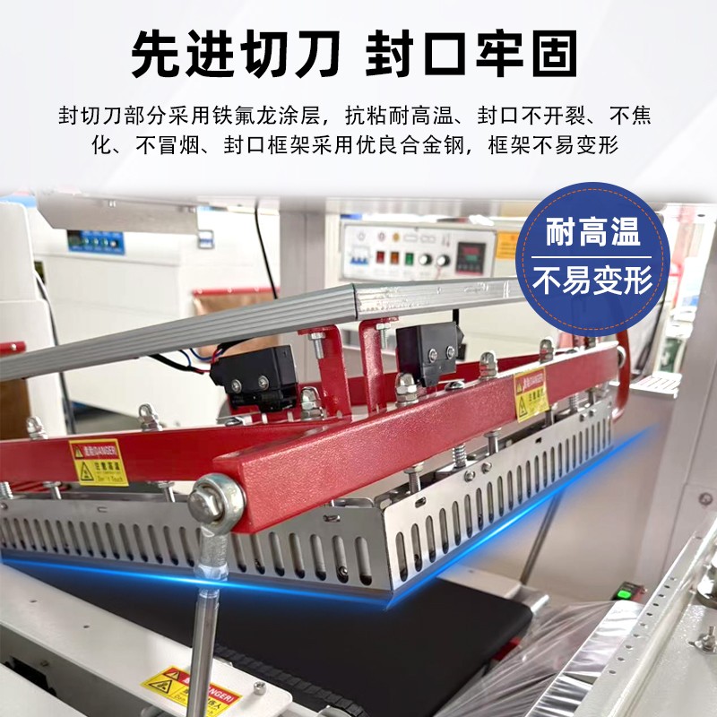 2. L 型封切單元 | L 型封切刀、加熱條、切刀、廢膜回收架 | 完成 “熱封 + 切斷” 一體化動作,封切刀溫度可精準(zhǔn)調(diào)節(jié)(通常 150-250℃),確保封邊牢固不滲漏 |