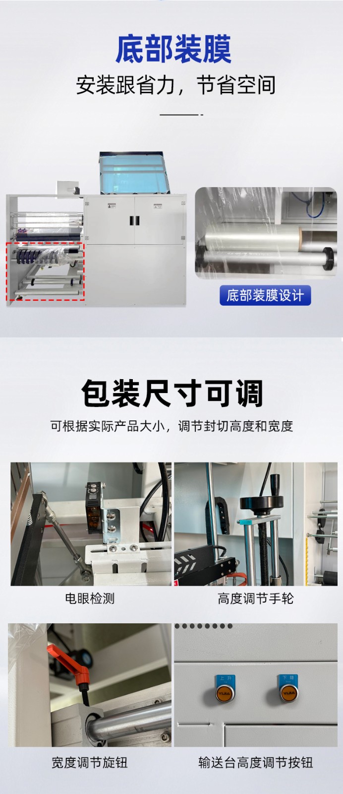 更易操作 | - 智能化控制:配備觸摸屏 ,可預(yù)設(shè)多組參數(shù)(如不同產(chǎn)品的封切位置 、收縮溫度),切換產(chǎn)品時一鍵調(diào)用 ; - 故障預(yù)警:自帶 “缺膜報警 、溫度異常報警、產(chǎn)品卡料報警” 等功能,降低人工巡檢難度 。 |